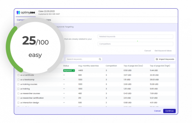 With Optimyzee keyword suggestions you will get the most relevant keywords for your business based on AI research. No more getting lost in the numerous keywords trying to decide which ones are the best.