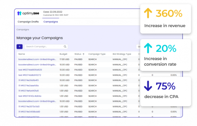 Optimyzee is an AI-powered Ad Management tool that structures and optimizes Google Ads campaigns in a few minutes, just like a senior PPC specialist.
